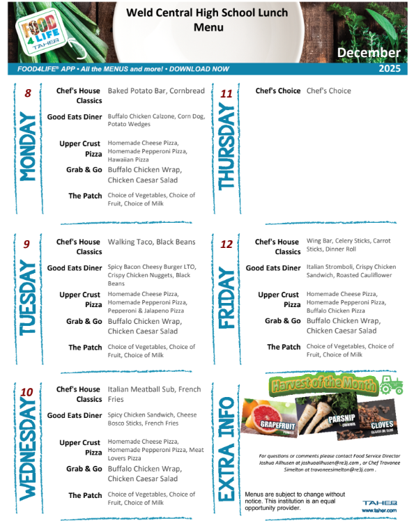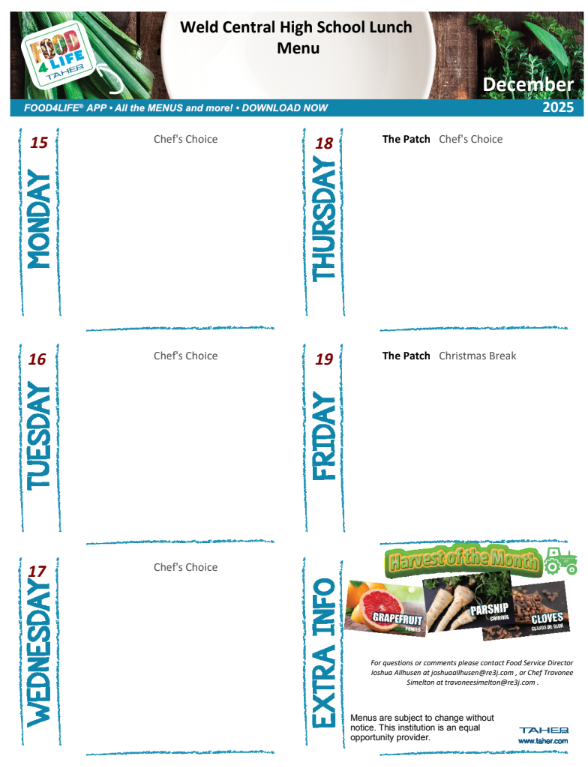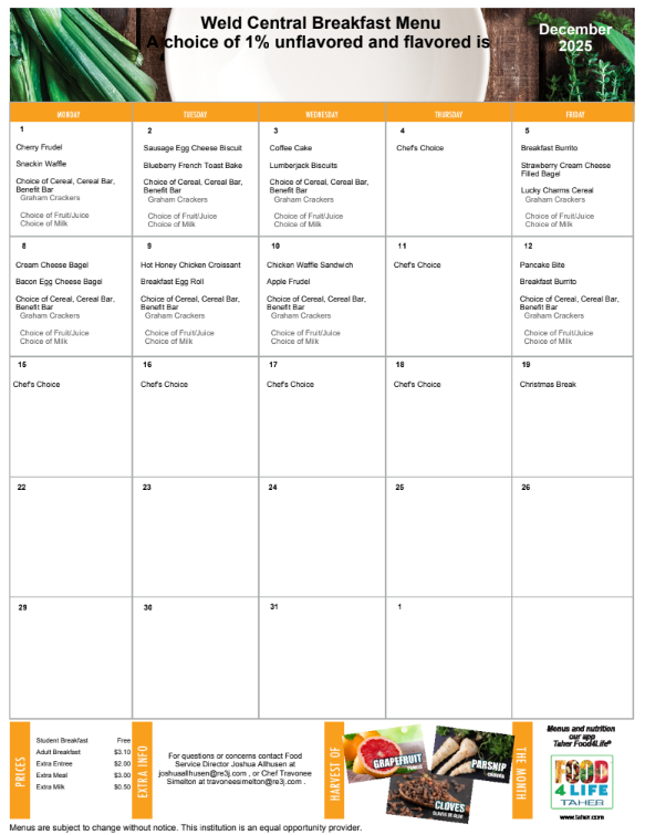 Please find the December lunch and breakfast menus attached